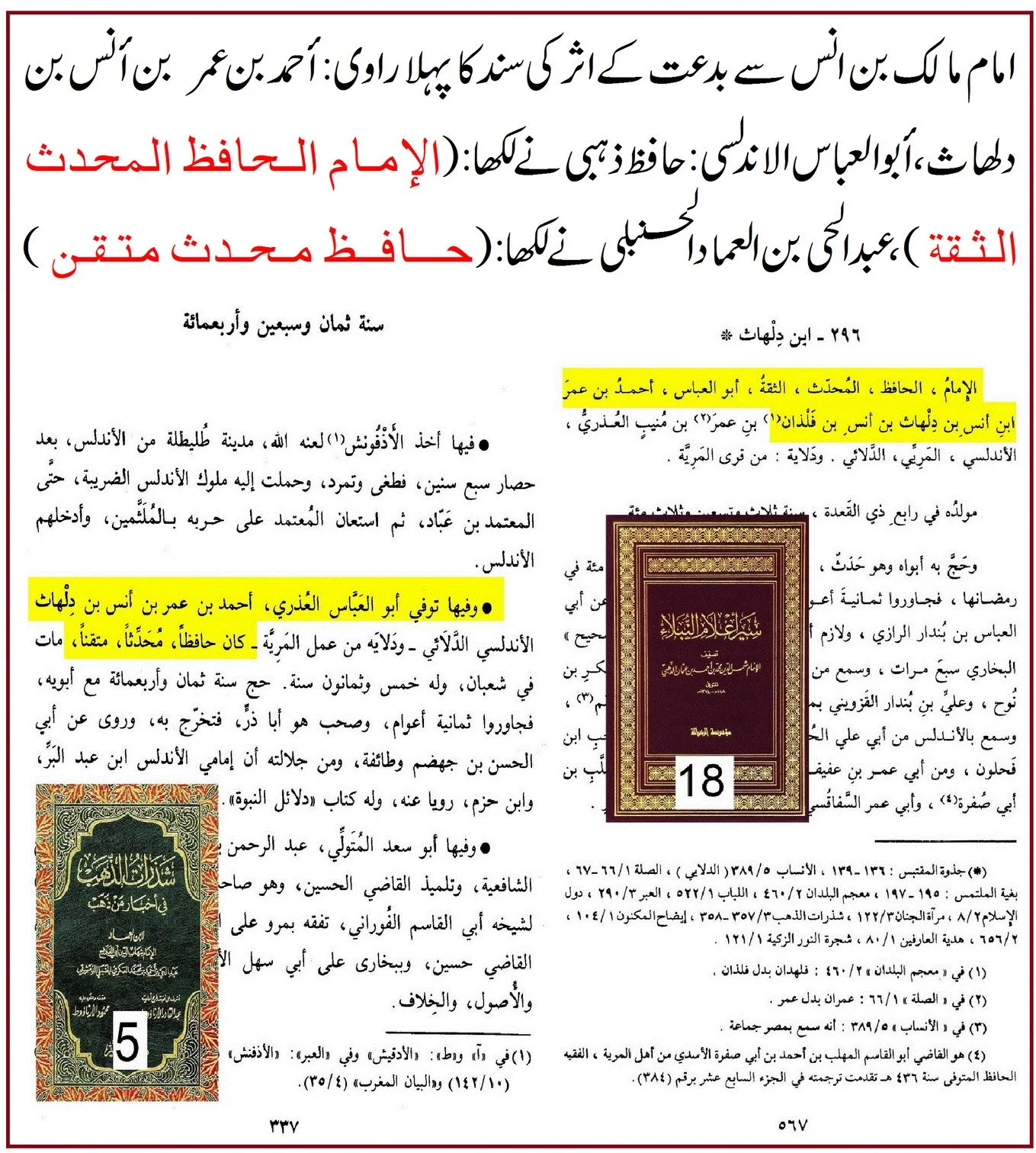 296 – ابْنُ دِلْهَاثٍ أَحْمَدُ بنُ عُمَرَ بنِ أَنَسٍ العُذْرِيُّ *——الإِمَامُ، الحَافِظُ، المُحَدِّثُ، الثِّقَةُ،—-وَسَمِعَ بِالأَنْدَلُسِ مِنْ: أَبِي عَلِيٍّ الحُسَيْن بن يَعْقُوْبَ البَجَّانِيّ؛ صَاحِب ابْن فَحلُوْنَ،