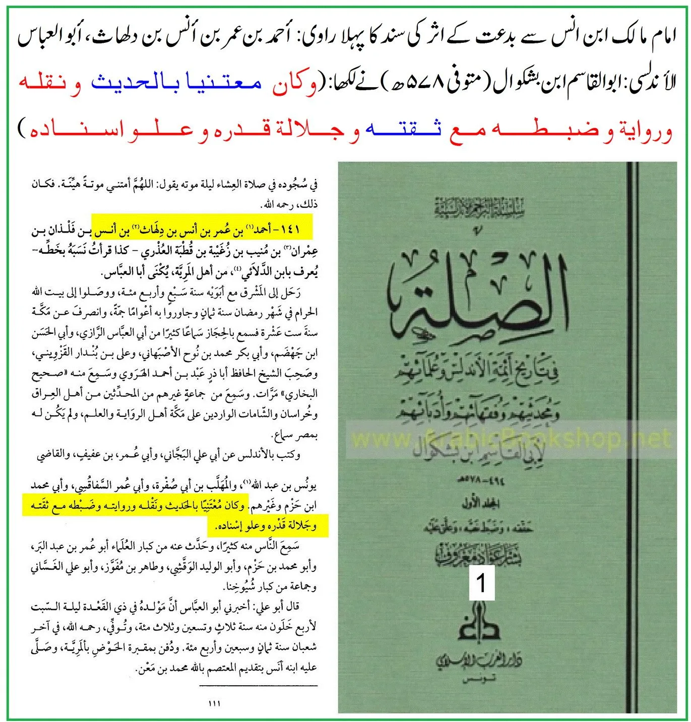 ① راوی نمبر 1: احمد بن عمر بن انس بن دِلھاث (ابو العباس الاندلسی)