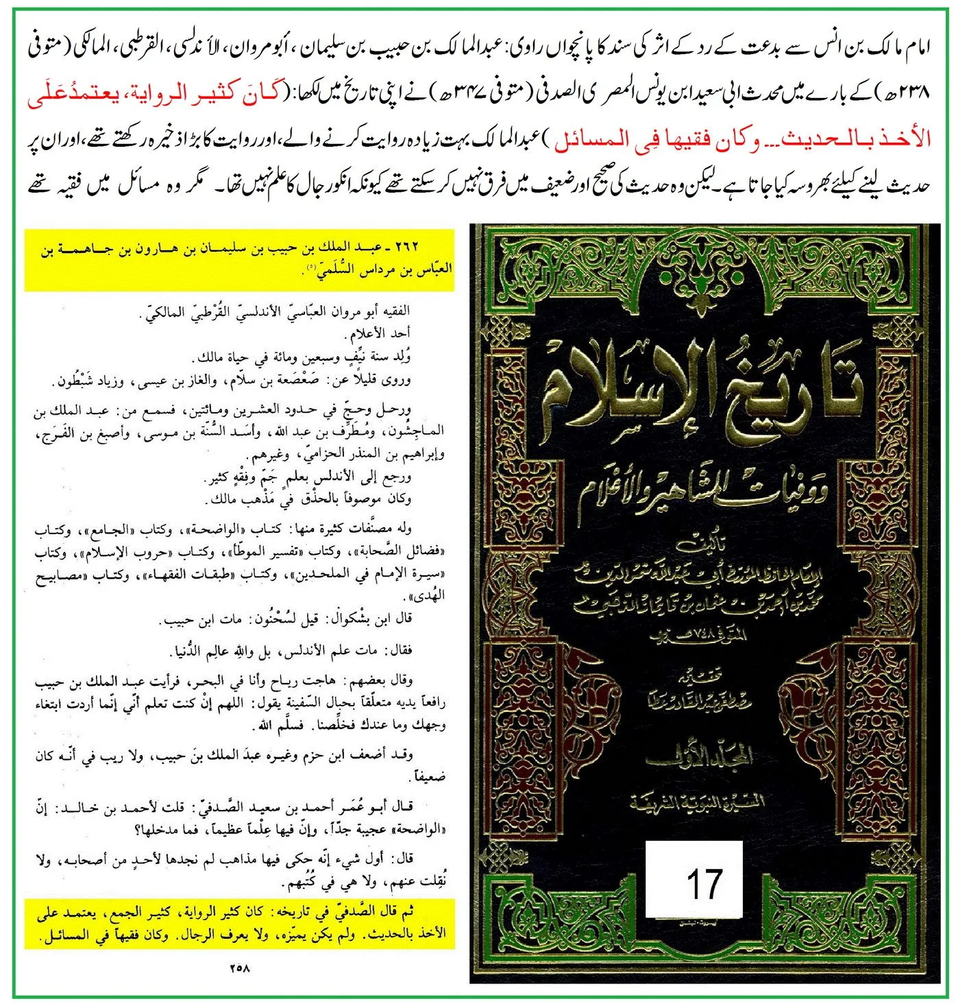 ◈ ایک اعتراض اور اس پر علمی گفتگو: “عبدالملک بن حبیب” کی تضعیف