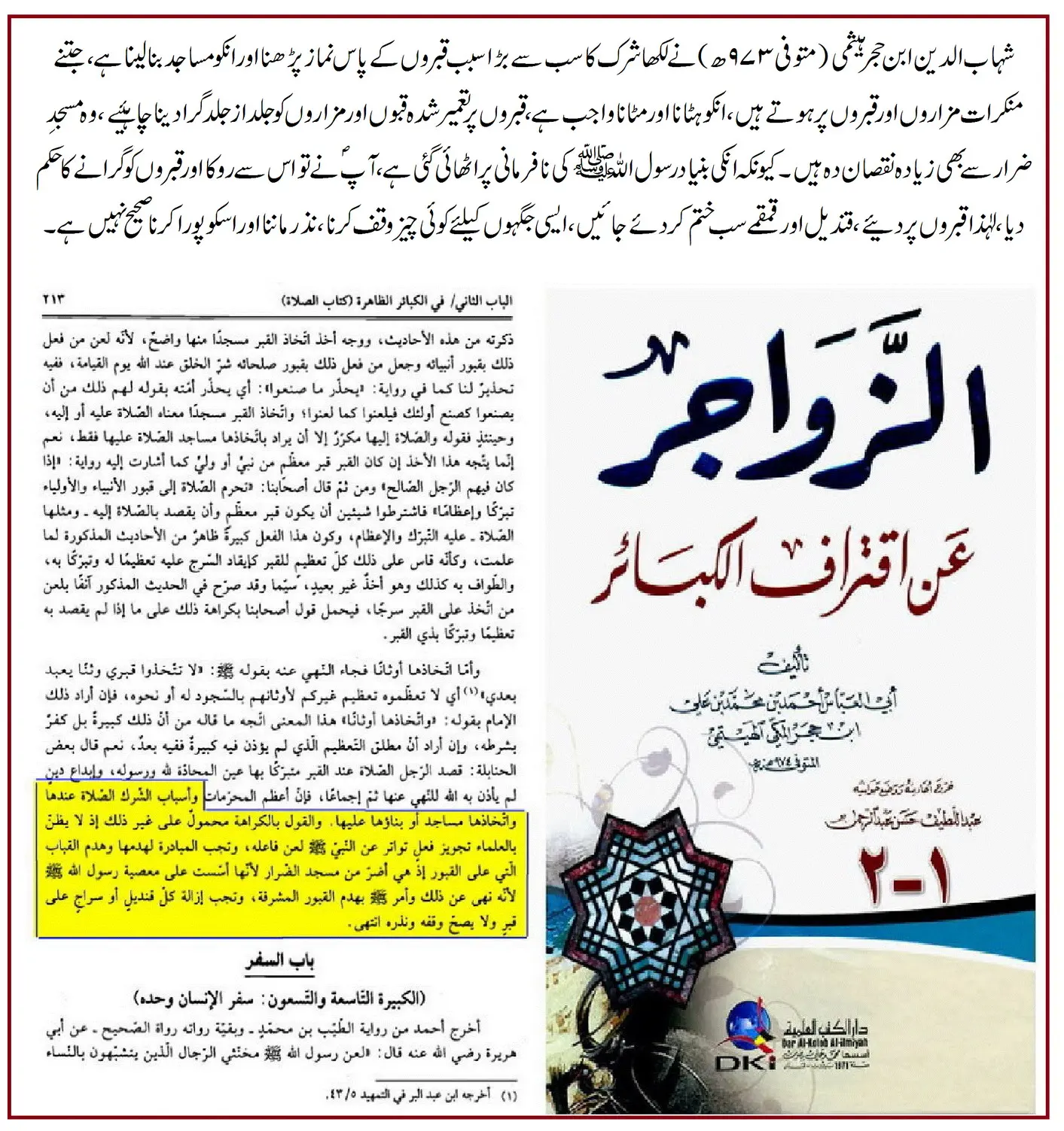 "وَقَالَ شَيْخُنَا زَيْنُ الدِّينِ: وَأَمَّا تَقْبِيلُ الْأَمَاكِنِ الشَّرِيفَةِ عَلَى قَصْدِ التَّبَرُّكِ، وَكَذَلِكَ تَقْبِيلُ أَيْدِي الصَّالِحِينَ وَأَرْجُلِهِمْ، فَهُوَ حَسَنٌ مَحْمُودٌ بِاعْتِبَارِ الْقَصْدِ وَالنِّيَّةِ.”