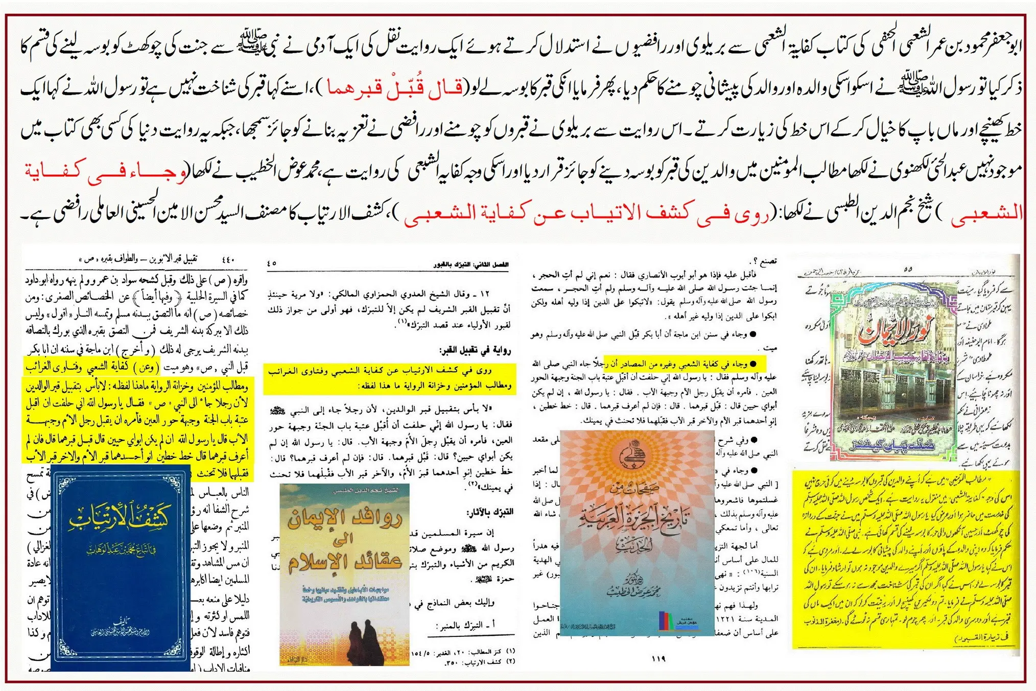 ❖ وہ قبروں اور بزرگانِ دین کے ہاتھ پاؤں چومنے کو قرآن و حدیث سے ثابت کرنے کی کوشش کرتا ہے۔
