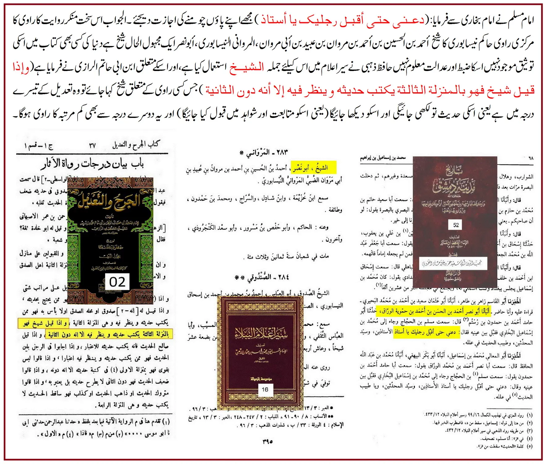❖ "یہی امام مسلم کا عقیدہ ہے کہ انہوں نے امام بخاری کے قدم چومنے کی اجازت مانگی۔”