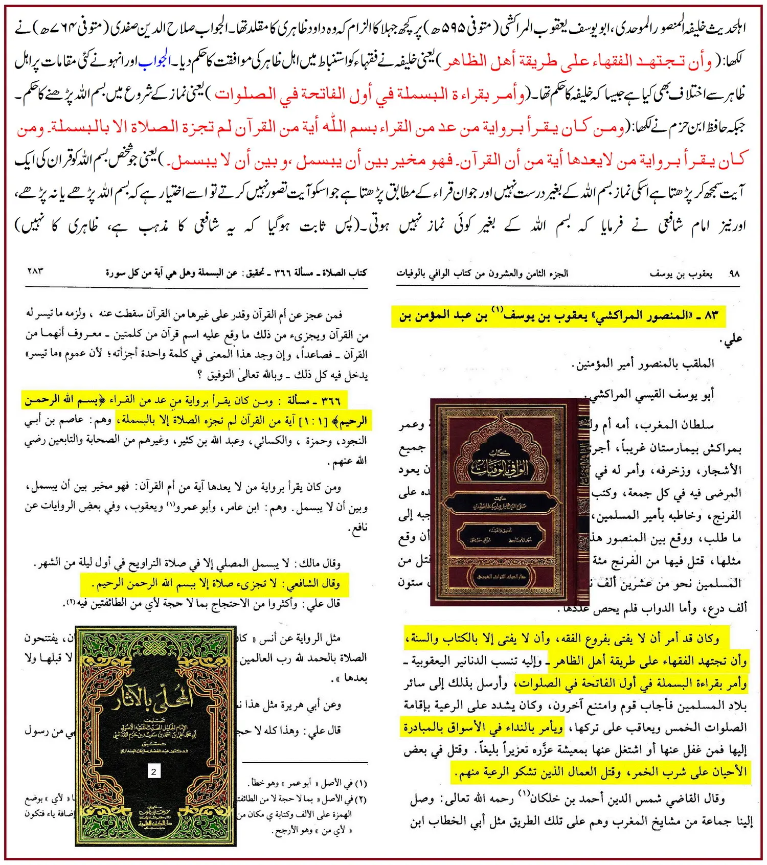 ❀ خلیفہ ابو یوسف نے بسم اللہ بالجہر کو لازم قرار دیا، جو امام شافعی کا موقف ہے، نہ کہ ظاہریہ کا۔