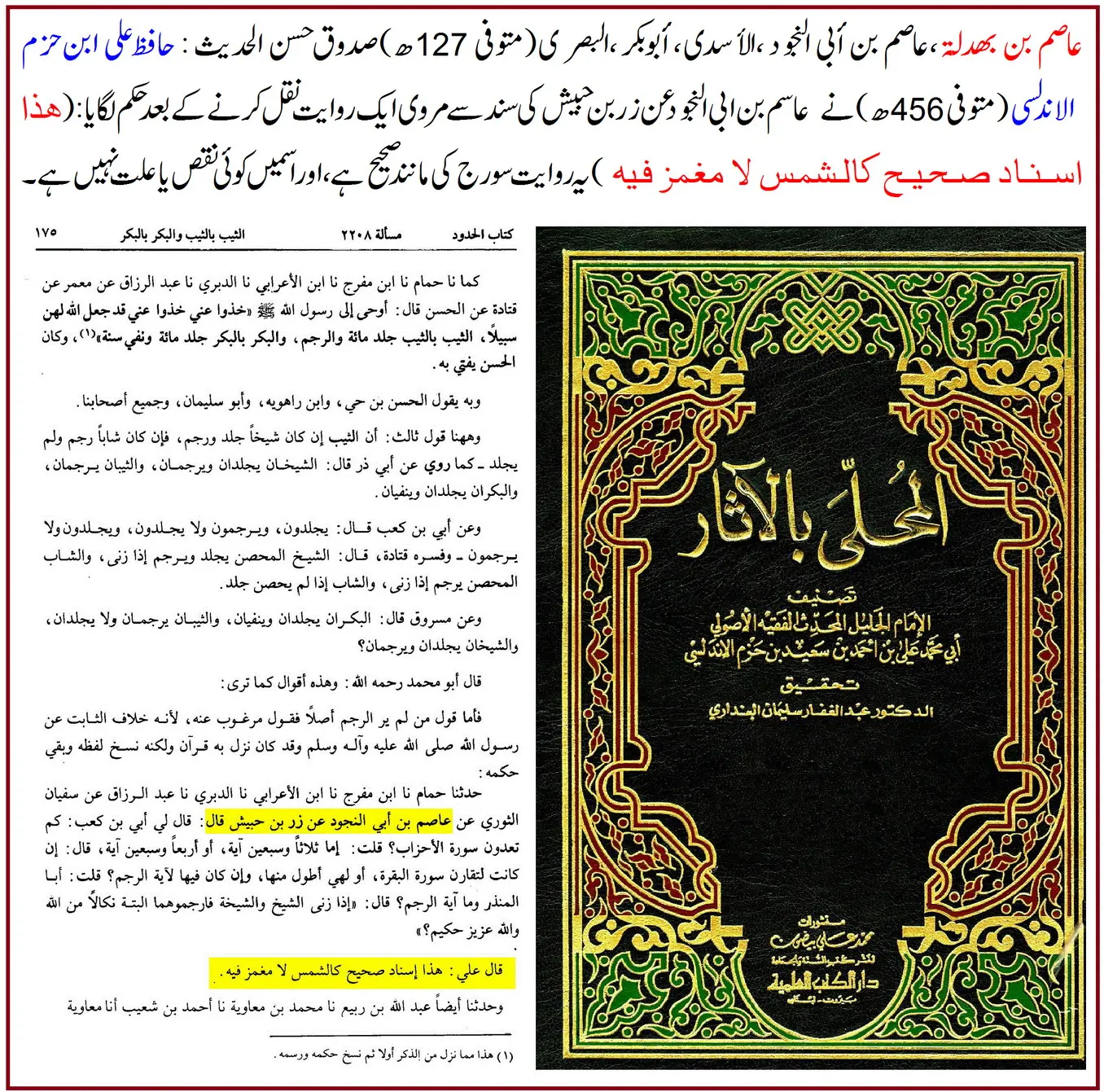 ❖ ابن حزم نے اس سند کو “صحیح كالشمس” کہا، جو اعلیٰ ترین درجہ کی تعریف ہے۔