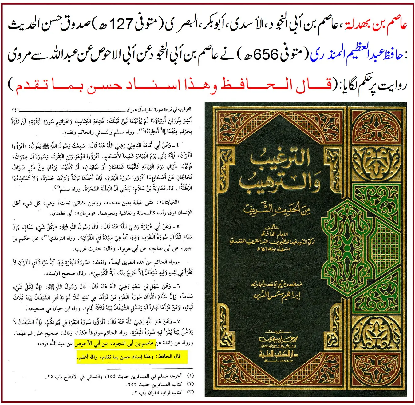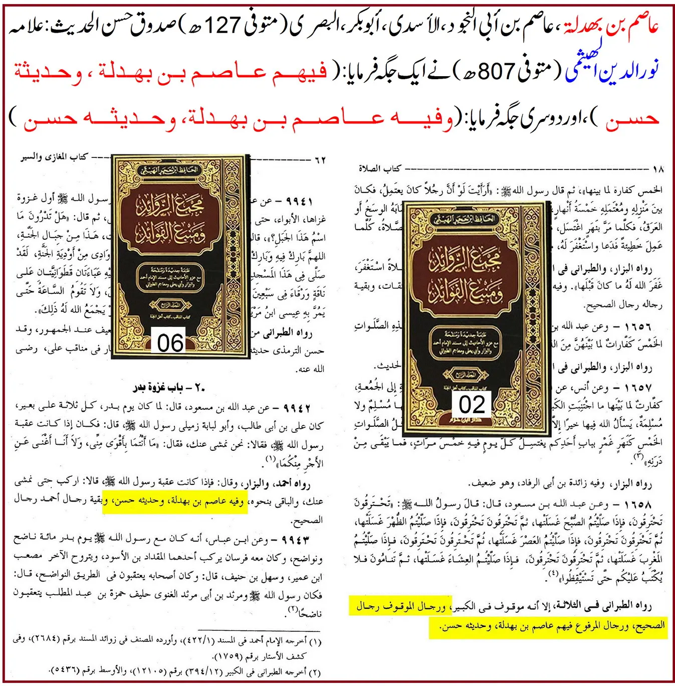 ❖ ہیثمی نے عاصم کے بارے میں صراحت کی: “حدیثہ حسن”۔