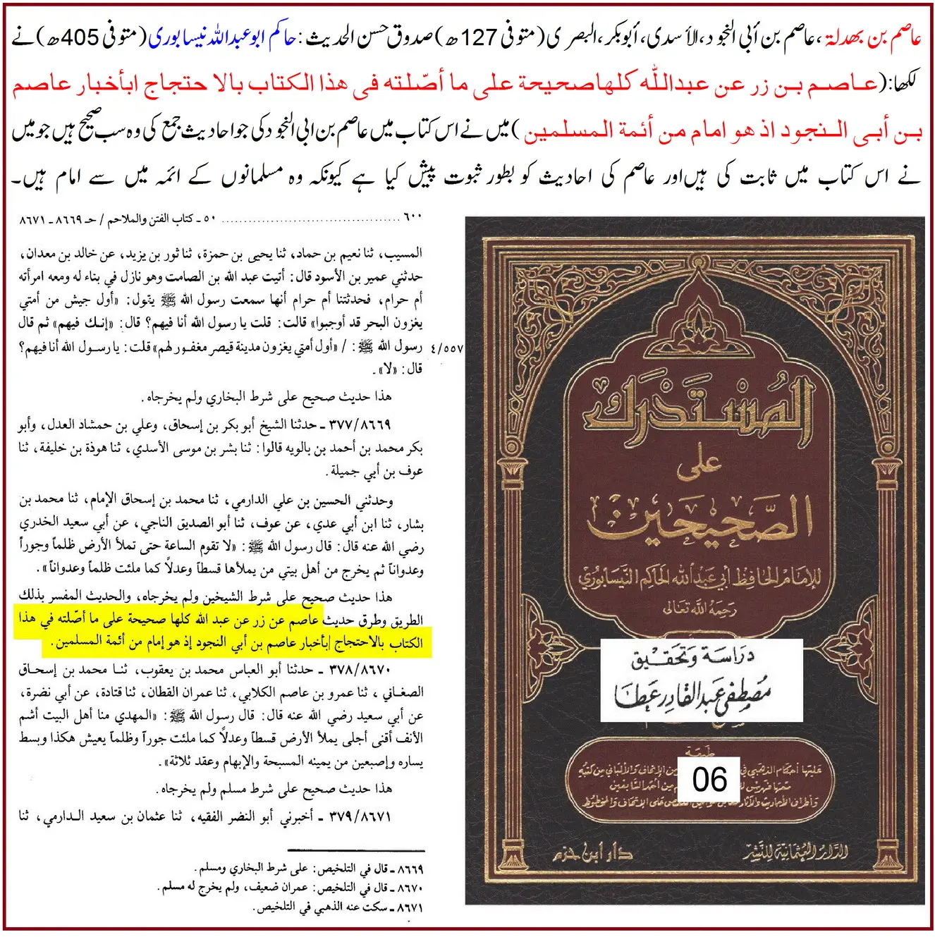 ترجمہ: حاکم فرماتے ہیں: