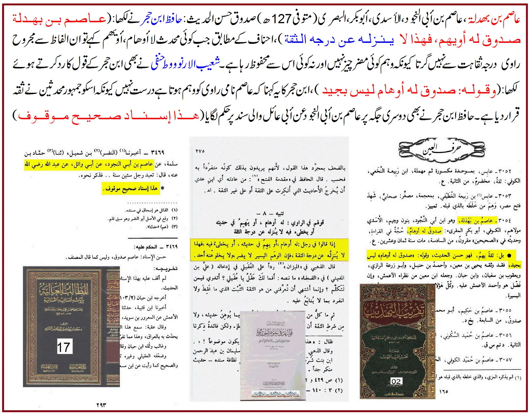 “ابن حجر کا یہ کہنا کہ عاصم ‘صدوق له اوهام’ ہیں، یہ ٹھیک نہیں۔