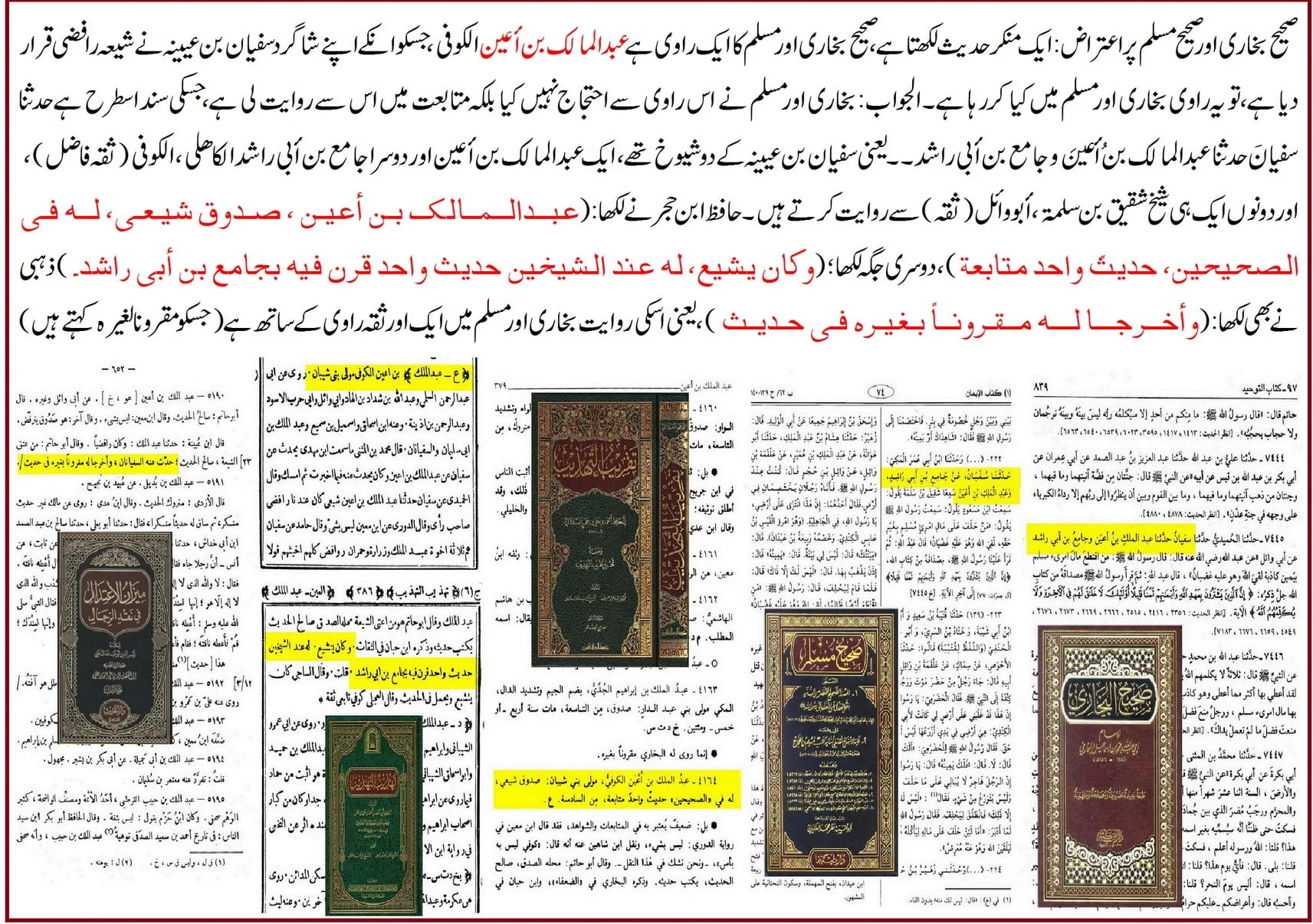 عبدالملك بن أعین… (اس سے) دونوں (یعنی بخاری و مسلم) نے ایک حدیث میں دوسرے کے ساتھ ملا کر روایت نکالی۔