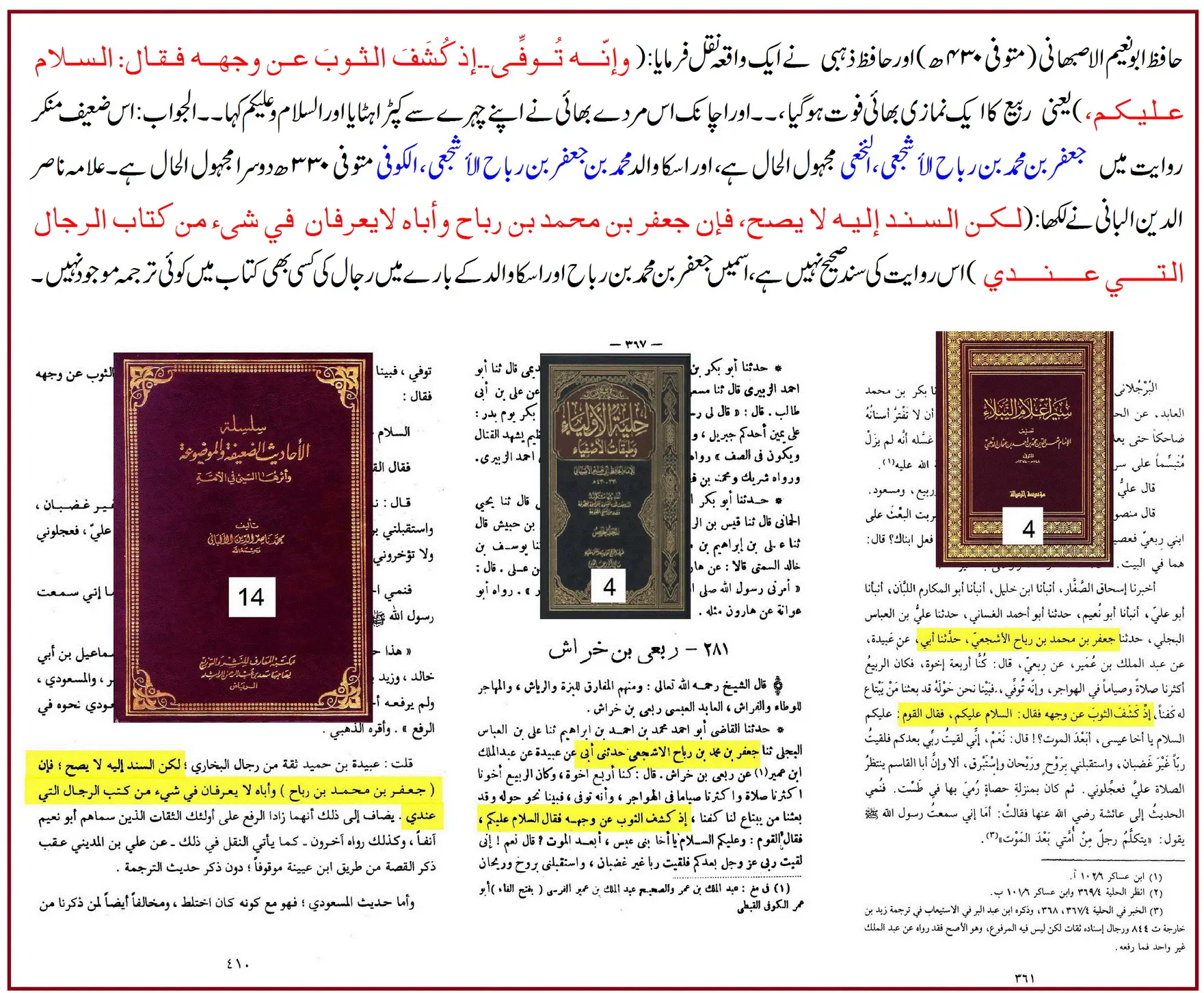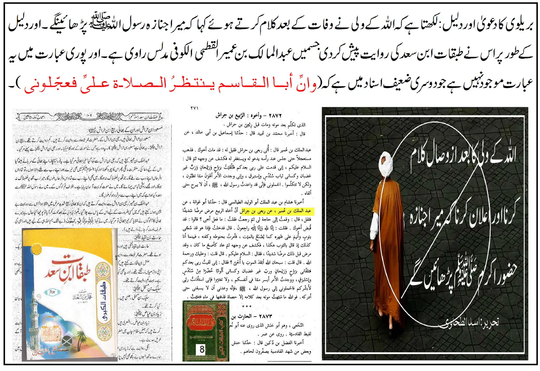 اس تحقیق میں بریلوی بدعتی کے اس دعوے کا مفصل رد پیش کیا گیا کہ ”مرنے کے بعد بھی لوگ کلام کر سکتے ہیں اور نبی کریم ﷺ ان کے جنازے پڑھانے کے لیے تشریف لاتے ہیں“۔
