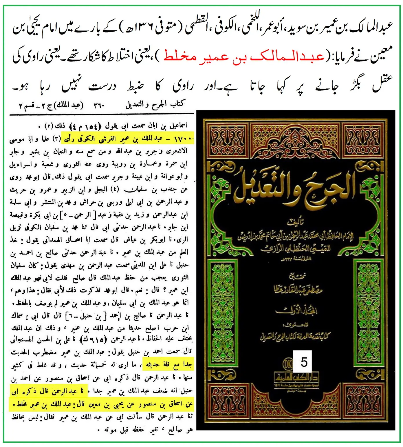❀ عبدالملک بن عمیر نامی راوی کی حقیقت اور اس پر محدثین کی جرح مفسر
