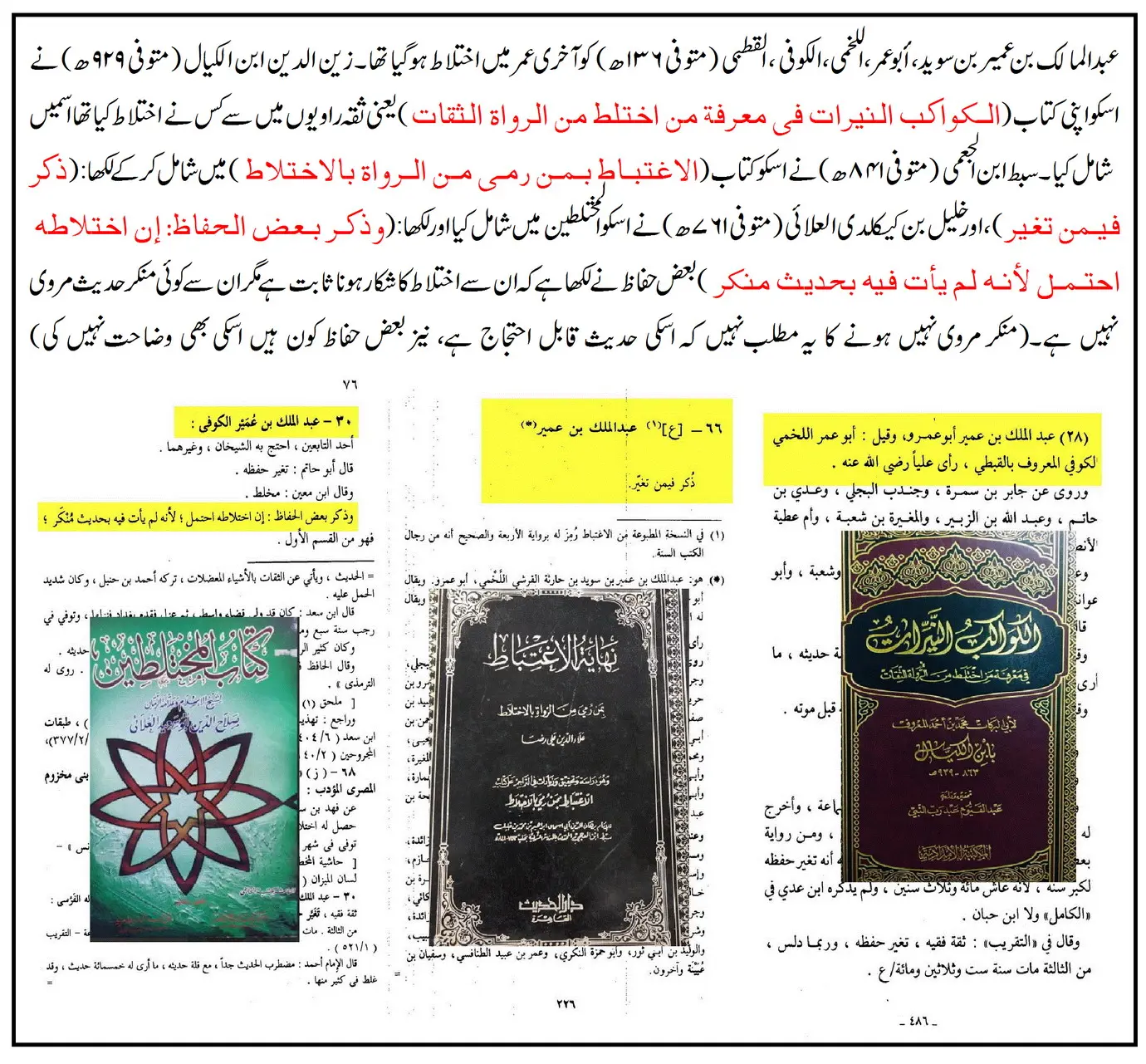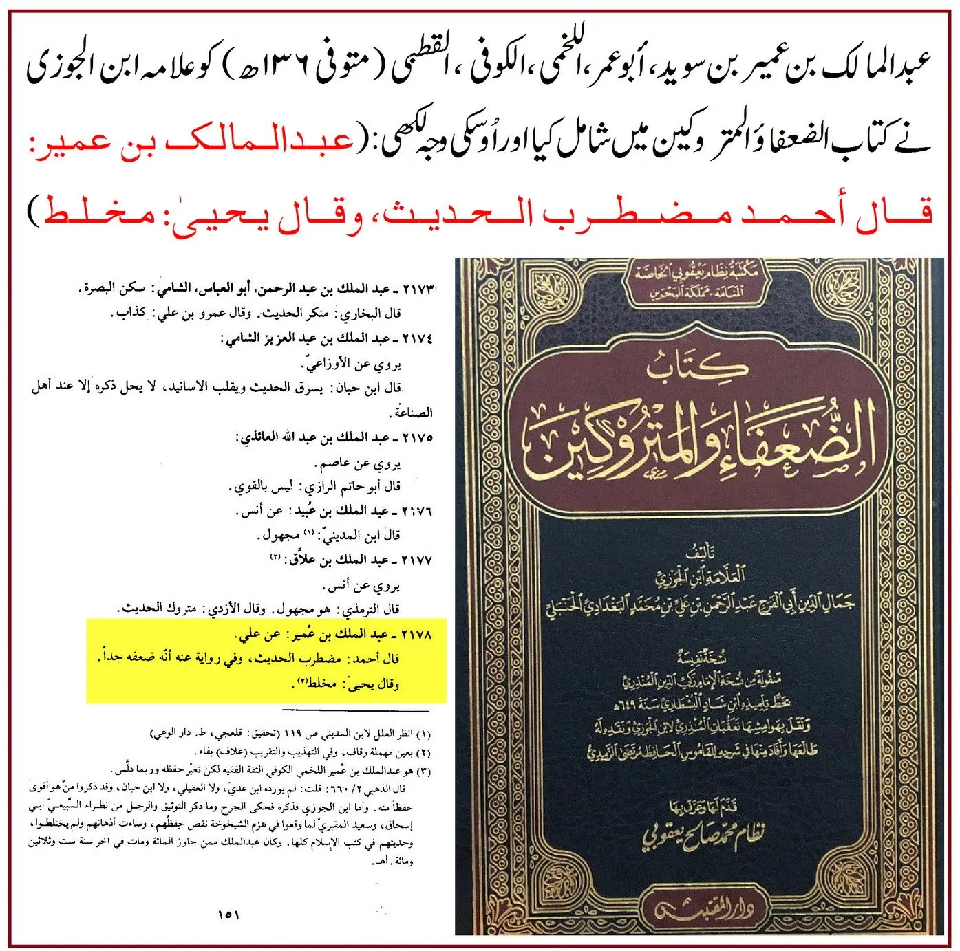 «عبد الملك بن عمير مضطرب الحديث… ضعفه أحمد جداً، وقال يحيى: مخلط»