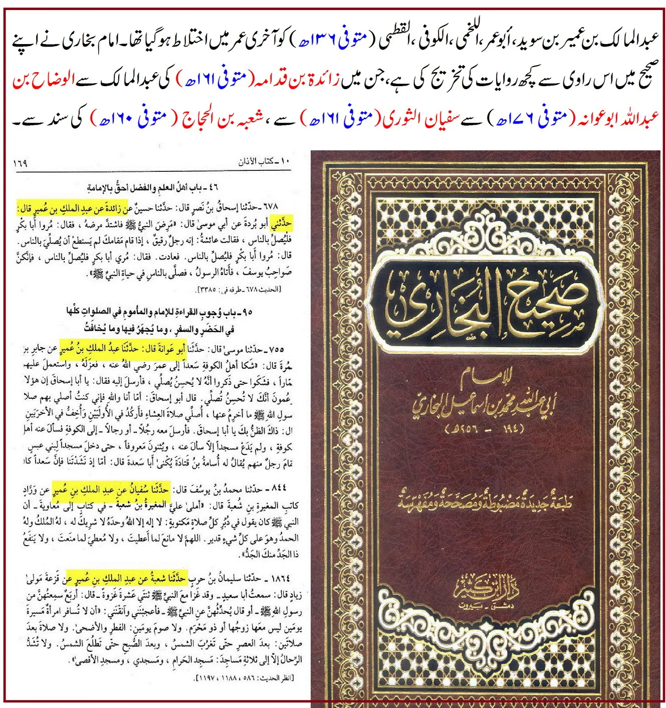 ➤ ان تمام اسانید میں امام بخاری نے زائدہ بن قدامہ (ت 161ھ)، شعبہ بن الحجاج (ت 160ھ)، سفیان الثوری (ت 161ھ) اور ابو عوانہ الوضاح (ت 176ھ) جیسے قدیم ثقہ تلامذہ سے روایت لی ہے۔
