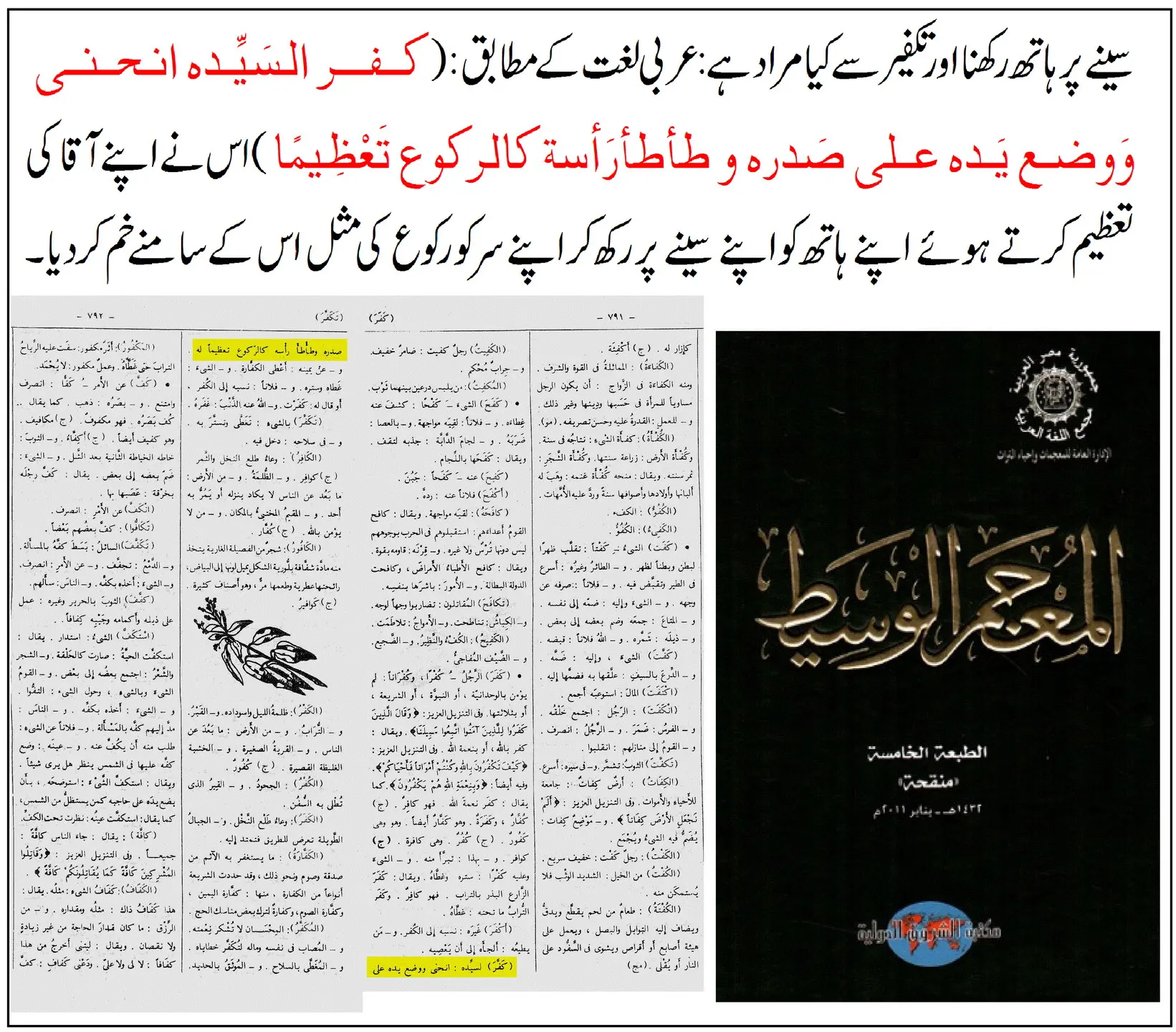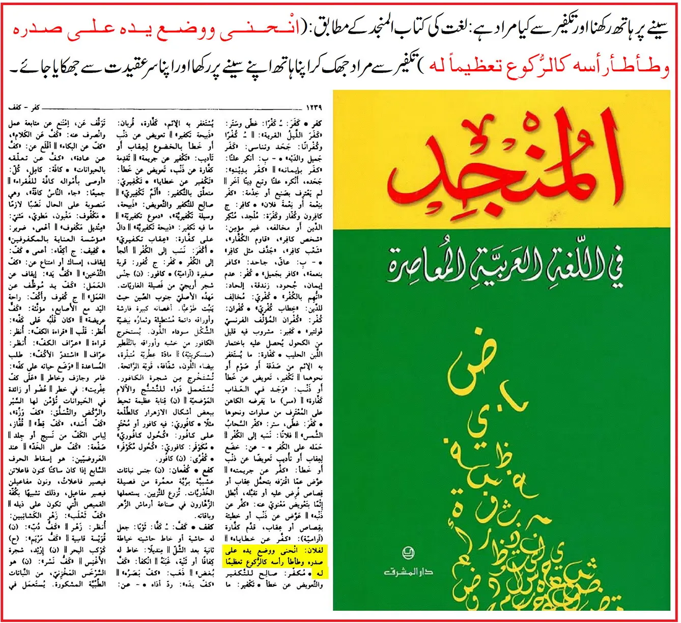 📌 ان تمام نصوص سے واضح ہے کہ لغت میں "تکفیر” غیر اللہ کی تعظیم کے لیے جھکنے اور ہاتھ سینے پر رکھنے کو کہا جاتا ہے، اور یہ ممانعت نماز میں اللہ کے لیے ہاتھ رکھنے پر منطبق نہیں ہوتی۔