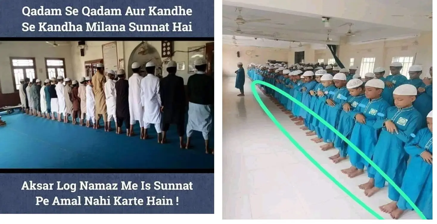 📌 نوٹ: پاؤں پر مارنا اسی لیے تھا کہ نمازی اپنے پاؤں ساتھی کے پاؤں کے ساتھ ملا کر کھڑا ہو، ورنہ اگر صرف سیدھا کھڑا کرنا مقصد ہوتا تو وہ کندھے سیدھے کرنے سے بھی ہو جاتا۔