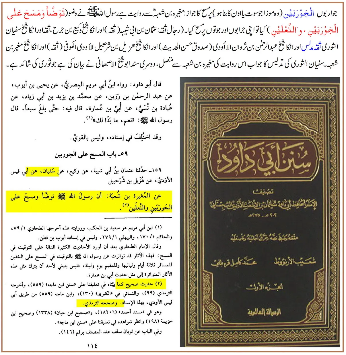 (سنن أبي داود، کتاب الطهارة، باب المسح على الجوربين)