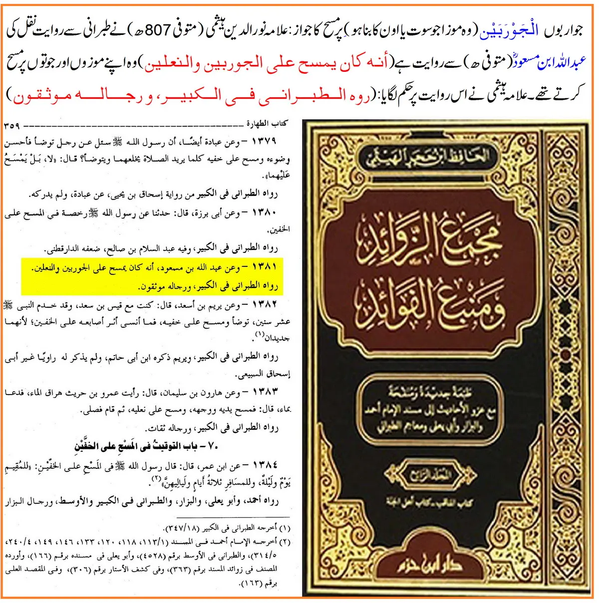 حضرت عبداللہ بن مسعودؓ اپنی جرابوں اور جوتوں پر مسح کرتے تھے۔