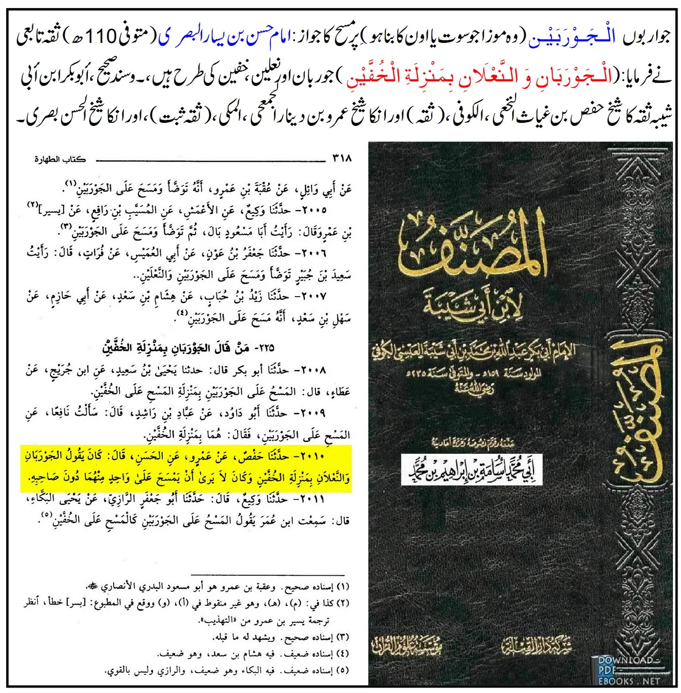 امام حسن بصریؒ فرمایا کرتے تھے: جرابیں اور جوتے خفین کے حکم میں ہیں۔
