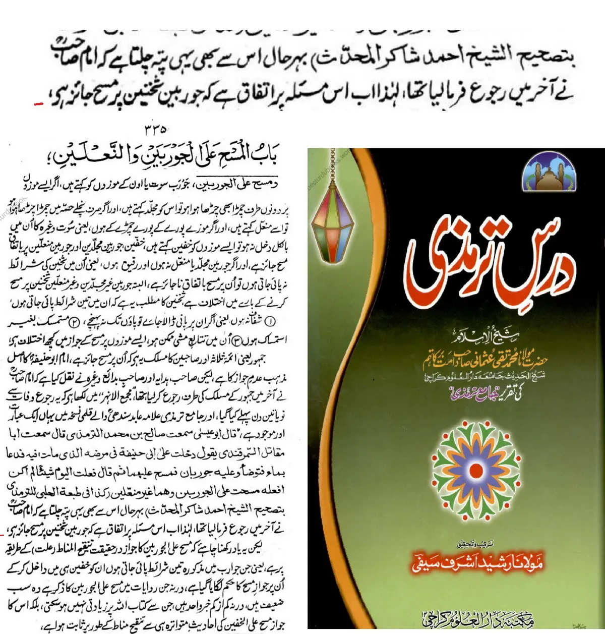 "امام صاحب نے آخر میں رجوع فرما لیا تھا، اب اس مسئلے پر سب کا اتفاق ہے کہ جرابوں پر مسح جائز ہے۔” (فتاویٰ عثمانی 1/212)